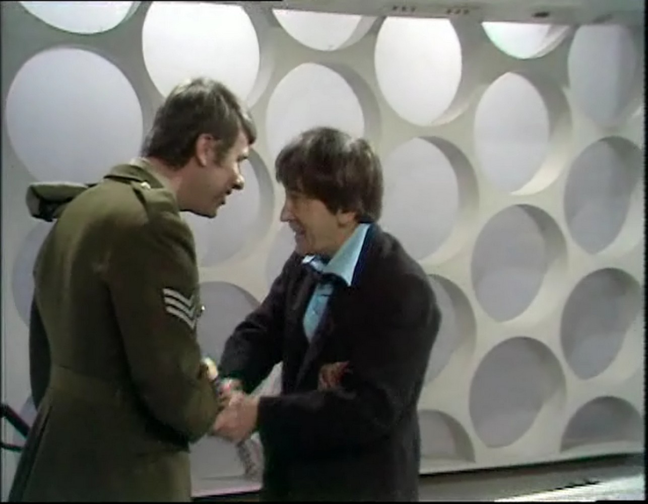 Die Freude, Herzlichkeit und Verbundenheit ist hier deutlich spürbar. So eine warmherzige Reaktion; ich kann mich nicht daran erinnern, wann John eine solche Reaktion mal von der dritten Inkarnation bekommen hat. Und das, wo auch diese sich eigentlich an Corporal Benton hätte erinnern müssen. Lassen wir es einfach mal so stehen.